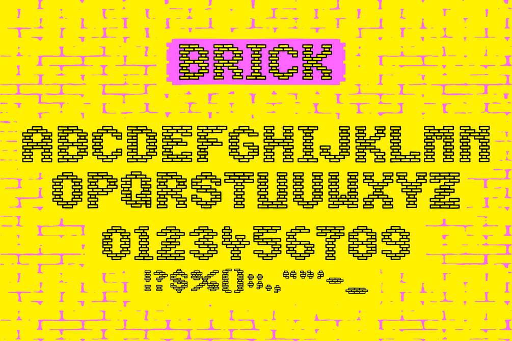Block Head is an All Caps display font featuring two styles to work with; Solid and Brick. SolidĀ is a filled font with some rough, bit-like edges, while Brick a stroked version that features individual parts that make up the letters.